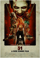 Nee. Rob Zombie ist nicht unmaßgeblich mitverantwortlich für einen Trend, der (nicht nur) das Horrorgenre immer tiefer in die Irrelevanz reitet: Horror-Fans machen Horror-Filme. Nun mag man Zombie zugute halten, daß er tatsächlich etwas mehr Gespür für Bilder hat als seine unzähligen Gruselkollegen; das ändert aber nichts an der Tatsache, daß er einfach nur zu emulieren sucht, was er selber gut findet. Verstanden hat er seine Vorbilder aber offensichtlich nicht, wie auch sein neuester, teils mit Crowdfunding finanzierter - was in der Horrorcommunity die durchaus berechtigte Frage aufwarf, wieso einer wie er überhaupt sowas braucht - Film 31 wieder beweist. Wo sich in Terrorklassikern wie LAST HOUSE IN THE LEFT das Grauen in eine geordnete Welt reinrüpelte, ist bei Zombie immer alles direkt auf Anschlag: Wie in allen seinen Filmen lernen wir seine Hauptfiguren als unfaßbar anstrengende, total asoziale Gang von daueraggressiven White-Trash-Knalltüten kennen. Man ist eigentlich schon total am Ende, als diese verlauste Bande nach 25 Minuten in die Hände von noch asozialeren Sadisten gerät, die ihr lustiges Psychopathenspiel "31" mit ihrer Beute veranstalten wollen. Was heißt das? Alle rennen für den Rest des Films durch ein Fabrikgelände, und wer's bis zur Ansage "31" überlebt, darf nach Hause gehen.