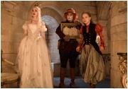 Bobin, so viel sei an dieser Stelle verraten, umgeht diesen Problem dann schnell, indem des Hutmachers Familie als untot, sprich: lebendig, spezifiziert wird. Was wiederum ein Mysterium um sie ins Zentrum rückt. Parallel dazu wird auch die Beziehung der königlichen Schwestern vertieft, wodurch Alice oftmals als Beobachterin historischer Ereignisse hinten angestellt wird. Das Zeitreise-Element von HINTER DEN SPIEGELN - der Flux der Zeit wird hier bildlich ansprechend als Ozean dargestellt - gefällt ebenso wie die Dynamik zwischen Alice und der personifizierten Zeit als ihrem Verfolger. Selbst wenn die Romanze von Letzterem mit der verbannten roten Königin - wie schon im Vorgänger erneut herrlich-überspielt von Bonham Carter verkörpert - etwas irritiert.