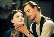 Dem zum Trotz setzt er die Romanvorlage recht frei um, strafft nicht nur die Zeitspanne der Handlung um mehrere Jahrzehnte, sondern entfernt sich auch mit der Zeit zusehends von der bissig-bösen Charakterzeichnung von Angel und deren berechnenden Gatten Esmé (Michael Fassbender). So kann man Angela bei aller narzisstischen Egozentrik durchaus Sympathie oder zumindest Bewunderung entgegen bringen, fast vergleichbar mit Scarlett in GONE WITH THE WIND. Selbst Hermione (Rampling) lässt sich dazu hinreißen, wenn Angel wegen eines (aus egoistischem Motiv) pazifistisch ausgelegten Romans während des 1. Weltkriegs ihre patriotische Leserschaft vor dem Kopf stößt. Esmé hingegen kann einem nur leid tun. Bei Elizabeth Taylor (nicht der Schauspielerin) noch ein kalter Verführer, der die erfolgreiche Autorin des Geldes wegen umgarnt, gibt er im Film völlig das Ruder aus der Hand, während Angela ihm im strömenden Regen den Heiratsantrag macht. Auch bei Ozon ist er Maler, der Fabrikhallen und dunkle Farben bevorzugt, doch wenn ihm seine Gattin einmal vorhält, wie schön doch die Farben der wirklichen Welt sind, bekommt das im (recht gut gefaketen) Technicolor eine eigene Bedeutung. Und obwohl im Kern eine Posse, schlägt der Film in der Mitte durchaus ernste Töne an. (Ehe er gegen Ende wieder vollends zur Farce wird.) Der Grund dürfte im niedergeschlagenen Gemütszustand Angels liegen, in Zeiten, in denen sie das Gespür für die Leser verloren hat. So entsteht stark der Eindruck, Ozon hätte weniger die Figuren umgestaltet als die Perspektive geändert und zeichnet die Handlung aus der Sicht seiner Hauptperson, auch wenn dies nicht in letzter Konsequenz durchexerziert wird, man auch Sachen erfährt, die Angel nicht wissen kann.