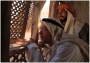 Am Anfang war das Wort - und nicht das Bild: und die einführenden Worte erschienen in Pseudo-Arial, und sie wurden dann in Form kleiner Partikel weggeweht und zwar genau so wie der Sand in der heißen arabischen Wüste. Ein Schelm, wer sich dabei an schlechte Powerpoint-Präsentationen mit peinlichen Effekten erinnert fühlt. Weitere hochgradig bedeutungsschwangere Text-Einblendungen (z.B. "Jahre später"), diesmal in Pseudo-Times-New-Roman und ohne Sand-Effekt, zeugen sowohl von der fast grenzenlosen Phantasie und künstlerischen Vielseitigkeit der Macher wie auch von ihrer Bereitschaft, keinerlei Mühen und Kosten zu sparen.