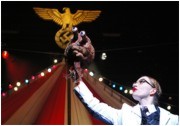 CAPTAIN BERLIN VERSUS HITLER ist keine Bernd Eichinger-Produktion und auch nicht vom televisionären Wirken eines Guido Knopp inspiriert. Im Gegenteil, Buttgereits Theaterstück, dass von Thilo Gosejohann an zwei Tagen im Berliner Hebbel-Theater aufgenommen und zum Film aufgepeppt wurde, scheint sich eher als Antiserum gegen die Mystifizierung des gescheiterten Malers, Soldaten, Reichskanzlers und schließlich Führers zu verstehen. Buttgereit hat Hitler zum Trash-Bösewicht gemacht und ihn damit zurück in die gern übersehenen Niederungen der Populärkultur geholt. Damit steht er in der Tradition besagter Propaganda-Trickfilme, aber auch von Comics der Zeit und nicht zuletzt Trash-Filmen der 60er und 70er Jahre, die sich am Spiel mit dem Nazi-Kitsch erfreuten. So ist das Stück selbst dann auch von filmischen und Comic-Erzählformen geprägt, was Gosejohann in seiner Nachbereitung mit dem Einfügen von Panel-Überschriften und Sprechblasen, sowie den digital hinzugefügten Abnutzungserscheinungen des Filmmaterials à la GRINDHOUSE entsprechend verstärkt.