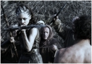 CENTURION scheint völlig aus der Zeit gefallen, aber auch aus jedem demografischen Erwägungsspielraum, denn wer will sich eine derart mufflige Historien-Schlachtplatte ansehen? Mittendrin steht der wieder mal verbissen grimmige Michael Fassbender, dessen Powerhype mittlerweile schon so leichten Ranz ansetzt. Mit solchen Trashern wird es jedenfalls nix mit dem "Gala"-Cover. Fassbender spielt bzw. verkörpert den römischen Zenturio Quintus Dias, der mit seiner Legion hinter feindlichen Linien in einen Hinterhalt gerät. Die deutliche dezimierte Kampftruppe muß sich nun zurück in heimische Gefilde schlagen, wobei ihnen die Gegnerschar samt stummer Späherin (sexy und auch sonst ein echter Lichtblick: Olga Kurylenko) stets auf den Fersen ist. Das ist einem alles sowas von Wurst, weil die Figuren austauschbar und abstoßend sind, man die schmutzigen Gesellen kaum auseinander halten kann und diese Ahnung von Plot dem Kindskopf Marshall einzig und allein dazu dient, die Blutwurst kreisen zu lassen. In diesem dummen und unfaßbar langweiligen Gerumpel wird fast pausenlos geschlachtet, durchbohrt, enthauptet und was man sonst noch so alles mit menschlichen Körpern machen kann. Das exzessive Geschmadder hat etwas peinlich Zwanghaftes und erfüllt schon nach einer halben Stunde nicht mehr seinen Zweck, falls da mal einer gewesen sein sollte. Die unpassende moderne Ausdrucksweise der Hauptfiguren fällt genauso aus dem Rahmen wie die kurz vor Schluß mühsam reingedrehte hilfsbereite Frau, die Fassbender noch als gut geschminktes love interest an die Seite gestellt wird.