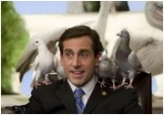Der "Humor" des an Gags erstaunlich armen Films beschränkt sich auf einen immer wieder vom Holzboot fallenden Carrell und jede Menge Pipi-Kacka-Witze aus der Feder von Steve Oedekerk, der wohl niemals die anale Phase verlassen wird. Carrell selbst darf ein paar Mal glänzen, wenn ihn der omnipräsente Gott an den Rand des Wahnsinns treibt, aber dann findet eine bemerkenswerte Wandlung statt: Als er schließlich den Auftrag Gottes annimmt, ist dies weniger eine Hingabe zum Glauben als vielmehr die totale Resignation. Wie das Opfer einer Sektengehirnwäsche schlurft er bedeutungsschwanger über die Planken. Wenn dann schließlich die "Flut" kommt, rast die dicke Dorfbevölkerung voller Panik auf die Arche; nicht etwa, weil Evan sie hätte von irgendeiner Idee überzeugen können.