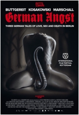 GERMAN ANGST ist nicht die Rettung des deutschen Genre-Kinos. Der über Crowdfunding finanzierte Episodenfilm ist aber definitiv ein riesiger Schritt nach vorn. Drei Stories im Spannungsfeld zwischen nervenzerrendem Kammerspiel, heftiger Gewalt und sexuell aufgeladenem Body-Horror. Ein Berlin-Film der etwas anderen Sorte. Radikal und streckenweise ausgesprochen ungemütlich, dennoch gleichermaßen faszinierend und fordernd. Inszeniert von Jörg Buttgereit (SCHRAMM), Michal Kosakowski (ZERO KILLED) und Andreas Marschall (TEARS OF KALI, MASKS). Drei Geschichten, die sowohl inhaltlich, als auch stilistisch ganz eigene Wege beschreiten und dabei tief in die Abgründe der deutschen Gesellschaft blicken.