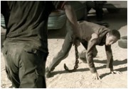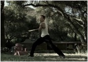 Das "kreative Team" hinter I AM OMEGA setzt beim Zuschauer keck die Kenntnis des Will Smith-Films, der Romanvorlage oder eben der alten Verfilmung mit Charlton Heston voraus. Zu keiner Sekunde wird erklärt, warum Dacascos offenbar allein auf unserem Planeten wandelt. Das kleine Budget verbietet die urbane Festung seines großen Vorbilds - der Held von I AM OMEGA verschanzt sich in einem kleinen Haus im Nirgendwo. Dort wird er wieder und wieder, egal ob Tag oder Nacht, von verseuchten Ex-Menschen angegriffen. Längst abgegessen von diesem tristen Dasein, befördert er die fiesen Monster recht beiläufig ins Jenseits. Dabei wird hier und da ganz zünftig Herz und Hirn im Sand verteilt. Was I AM OMEGA aber tatsächlich in Teilen interessanter macht als der letztlich recht stromlinienförmige Will Smith-Knaller, ist die fast vollends gestörte Persönlichkeit der Dacascos-Figur. Verbittert vom Verlust seiner Frau und dank der Einsamkeit am Rand des Irrsinns, hat er nur noch das Töten, am Besten im ganz großen Stil, im Sinn. Die Halluzinationen, die ihn quälen, verleihen dem Film zu durchaus eindringlichen Szenen. Insbesondere die Konsequenz der Figurenzeichnung erstaunt: Weder reagiert er auf den Hilferuf einer Frau, noch will er sich auf ein Gespräch mit plötzlich auftauchenden Besuchern seiner Farm einlassen. Dacascos will gar keinen Kontakt mehr mit anderen Menschen haben.