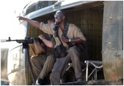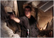 Lange Brennweiten, den Shutter angestellt, damit man auch noch den letzten von der Explosion einer Panzergranate hochgeschleuderten Erdkrümel fliegen sehen kann, schweres Geschütz bricht durch marode Mauern, und mittendrin Seagal, der sich selbst spricht und sich selbst bewegt. Man staunt. Bereitwillig entschließen sich die Macher, den nutzlosen Ballast namens Glaubwürdigkeit über Bord zu werfen, wenn eine Blondine, ihre achtbaren Körperformen in enge schwarze Klamotte gezwängt, als Supersöldnerin den dreckigen Jungs zeigt, wie man gestandene Milizen überwältigt. Es rummst und kracht allerorten, so soll es sein.
