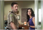 Aber nun klingelt wieder das Telefon, während das Dimension-Logo auf der Leinwand erscheint, und selbst der unwirscheste Geist kann sich nur schwer der Nostalgie erwehren. Erstaunlich aber, wie fröhlich SCREAM 4 danach sein Intro darbietet; will man bei den reichlich gezwungenen Dialogen über Torture Porn noch ungeduldig fragen "Meint Ihr das ernst?", so schnell erfährt man auch, daß die Antwort "Nein" lautet. Ein mehr als gewinnender Beginn, dem ein durchaus willkommenes Wiedersehen mit altbekannten Figuren folgt: Sidney Prescott (Neve Campbell) ist nach Woodsboro zurückgekehrt, um ihr Buch über die Geschehnisse der Vergangenheit vorzustellen, während Ex-Boulevardreporterin Gail (Courtney Cox) unter ihrer Schreibblockade und der Provinzialität ihres Mannes, Sheriff Dewey (David Arquette) leidet. Campbell spielt so regungslos wie eh und je; Cox gibt erneut eine unwiderstehliche Bitch, sieht aber leider von Hollywood-Schönheitsmetzgern monströs verunstaltet aus; und Arquette hat seine Mimik immer noch zu wenig unter Kontrolle, um Gefahr zu laufen, Dewey jemals nur auf den Dorftrottel zu reduzieren (auch wenn der arme Mann später mit einer Bettpfanne verprügelt werden wird).