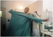 Im zweiten Teil rät der Marquis seinem Gast einen freiwilligen Aufenthalt in der Klinik eines befreundeten Psychiaters. Hier folgt die Geschichte, mit Teils großer Freiheit und doch nicht mehr nur vage angelehnt Poes System des Dr. Teer und Prof. Feder. Musste in der Vorlage der die Anstalt besuchende Gast überrascht feststellen, dass der vorher angewandten Methode, den Patienten jegliche Freiheiten zu lassen einer restriktiven Therapie gewichen ist, verhält es sich im Film genau andersrum. Der Held wiederum sorgt auf seine Weise, dass die alten Verhältnisse mit ihren an Die 120 Tage von Sodom erinnernden Straftherapien wieder eingeführt werden. Es wird hier zwischen den Zeilen nur zu klar, dass mit der "alten Ordnung" das kommunistische Regime gemeint ist. Svankmajers Arbeit war zu Zeiten des Warschauer Paktes immer behindert worden. Seinem Wunsch, auch Langspielfilme zu machen konnte er nie folgen. DER TOD DES STALINISMUS IN BÖHMEN war 1990 seine Art der Abrechnung mit dem System. So ist es nur zu verständlich, dass er den jetzigen politischen Verhältnissen in Tschechien, die Sozialdemokraten haben eine Koalition mit den Kommunisten gebildet, nicht goutiert.