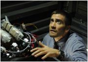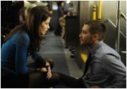 Das Problem liegt, neben inkonsequenter Schauspielführung, natürlich auch am Skript. DTV-Schreiber Ben Ripley (SPECIES III & IV) hat die Geschichte sehr ordentlich auf Rasanz hin konstruiert, verfährt in Sachen Charakterzeichnung allerdings lax bis chaotisch. Colter etwa schwankt willkürlich zwischen Hysterie, militärischem Schneid und charmanter Spitzbüberei - allesamt Modi, die Gyllenhaal auf Knopfdruck beherrscht, was jedoch, je hektischer man den Autor besagte Knöpfe drücken hört, zunehmend irritiert. Hinzu kommt, dass Ripley das Strukturelement der achtminütigen Zyklen enttäuschend linear auflöst: Statt sich in der Zeitschleife unauffällig einzurichten, ihre Muster zu studieren und geschickt zu manipulieren, dreht Colter immer wieder aufs Neue durch, springt auf, rennt rum, blafft Leute an, etc. Wo Phil Connors sich den perfekten Murmeltiertag noch in penibler Feinarbeit erschließen musste, basieren Colters Ermittlungserfolge auf grobem Zufall und Drehbuchbelieben; der Whodunit-Aspekt des Films - jeder Fahrgast könnte der Täter sein! - verpufft dadurch weitgehen, zumal die Mitreisenden samt und sonders Staffage bleiben.