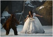Dann aber kommen die Zwerge durch den Wald geturnt und lassen in einem die Befürchtung keimen, der Vorführer hätte aus Versehen eine Doku über den Cirque du Soleil eingelegt. Doch nein, wir sind immer noch in Tarsems Schneewittchen-Streifen und ja, der meint das alles ernst. So ernst, dass man Hildchen Knef in ihrem Grab "Von nun an gings bergab" summen hören kann - und das wäre nur angemessen, denn was nun folgt ist eine peinliche Aneinanderreihung alberner Gags und Märchenversatzstücken, bei der man sich eher in einem Film von Friedberg/Seltzer oder den Wayans wähnen würde, wären da nicht die pompösen Kostüme und aufwendigen Kulissen. Zugegeben, ganz so schlimm wie die Komödientotalausfälle EPIC MOVIE oder WHITE CHICKS ist das Humorniveau hier nicht, denn immerhin gibt es im Film etwa drei, vier Witze, die wirklich gut sind, aber in der Summe kann das den Film nicht retten: Wenn er nicht gerade die offensichtlichen Gags aufsammelt, dann blödelt er sich durch Genre-Konventionen, nur um diese dann am Ende doch zu bestätigen. Fehlt eigentlich nur noch eine völlig willkürlich gesetzte Rap-Nummer, doch immerhin vor der wird man verschont, wenn auch die Bollywood-Einlage im Abspann nicht viel besser ist.