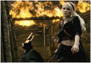 Ähnlich verhält es sich mit der Idee des Traums in einem Traum. Es gibt wohl kaum einen Zuschauer, der hier nicht an INCEPTION denkt - ein Film, dem man vieles vorwerfen kann, nicht jedoch einen Mangel an Exposition. Es war stets (über-)deutlich, wie sich Traum und Realität zueinander verhalten, welche Konsequenzen Ereignisse in der Realität auf den Traum haben. In SUCKER PUNCH sind diese Relationen wenn überhaupt nur diffus vorhanden. Wenn es um das Feuer geht, stellt Babydoll sich Drachen vor und wenn der Plan nicht ganz so verläuft wie gewünscht, geht auch in der Traumwelt irgendetwas schief - doch welches Mädchen im Traum welche Aufgabe erfüllt, wie genau das Stehlen der Gegenstände in der Realität abläuft und was um alles in der Welt eine Bombe mit einem Küchenmesser zu tun hat, das bleibt offen. So entsteht auch in den Actionszenen leider nie das Gefühl, dass etwas auf dem Spiel steht, weil eigentlich nie ganz klar ist, was die Ereignisse in der Traumwelt zu bedeuten haben.