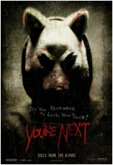 Nach einem bejubelten Gastspiel beim diesjährigen Fantasy Film Fest hat es der bereits 2011 fertig gestellte aber lange vom Verleih Lions Gate im Produktionsland zurückgehaltene YOU'RE NEXT doch tatsächlich geschafft auch hierzulande einen regulären Kinostart zu bekommen. Das ist durchaus erfreulich, denn Adam Wingards (A HORRIBLE WAY TO DIE) rasanter Genre-Hybrid macht sich als kleiner fieser Horror-Cocktail zwischen all den überproduzierten Blockbuster-Langweilern verdammt gut. Wingard, der neben jungen Wilden wie Ti West oder Jason Eisener vollkommen zu Recht als hoffnungsvoller Newcomer gehandelt wird, wählt als inhaltliche Ausgangsbasis eine bestechend simple Home-Invasion-Storyline. Im Gegensatz zur Standartvorgehensweise temporäre Gewaltausbrüche in das Gewand und die Logik klassischer Psychothriller zu pressen, widmet sich Wingard primär den Motiven und Mechanismen moderner Slasherfilme. Dies allerdings auf eine äußerst erfrischende Art und Weise, die wohldosiert auch Platz für humoristische Elemente lässt.