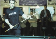 Gauner und Abzocker will man doch im Film sehen. Man will im richtigen Leben nicht abgezockt werden und zum selber Gaunern fehlt einem die kriminelle Energie (oder schlichtweg die Cleverness), aber im Kino ist das alles spätestens seit Redford und Newman supercool. In letzter Zeit hat man das seltener zu sehen bekommen, der beste und klügste Zockerfilm der letzten 20 Jahre war John Dahls Pokerfilm ROUNDERS (1998), und der hat es bis heute nicht nach Deutschland geschafft. Glücklicherweise segelt jetzt aber POOLHALL JUNKIES in die Videotheken, der erste ernstzunehmende Billardfilm seit THE COLOR OF MONEY.
