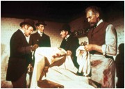 London im Nebel, dralle Prostituierte, Schritte auf dem Kopfsteinpflaster: Schon wird die erste Unglückliche abgemurkst! Man fühlt sich wie bei Hammer-Produktionen, denn was man zu sehen kriegt, sind zusammengeschnürte Möpse in tiefen Dekolletés und - für damalige Verhältnisse - recht saftiges Gemeuchle. Eigentlich nicht der Rahmen für Arthur Conan Doyles Superdetektiv Sherlock Holmes, aber genau der macht hier Jagd auf den schändlichen Nuttenkiller. Und zwar nicht auf irgendeinen, nein, es muß schon Jack the Ripper sein, wenn Holmes die Pfeife anzünden soll. Theaterveteran John Neville - kurioserweise erst in den 80ern mit Terry Gilliams MÜNCHHAUSEN zu größerer Bekanntheit gelangt - bleibt fest im Baker Street-Klischee. Holmes weiß alles, doziert darüber und kann Dir schon zwei Minuten, bevor die Tür aufgeht, sagen, wer da reinkommt.