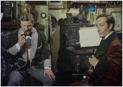 Überraschend gut, weil originell und unerwartet, der Auftritt von Insel-Urgestein Robert Morley als Holmes' Bruder Mycroft (der allerdings keine Ähnlichkeit mit Sherlock hat). Weniger originell und auch nicht wirklich unerwartet die Auflösung, die sich mit der Subtilität von Paukenschlägen ankündigt, wann immer ein blaßgesichtiger Unhold böse guckt. Aber was rede ich von subtil, sämtliche Feinheiten gehen unter in Szenen wie jener, in der eine subjektive Kamera sich aus Killerperspektive an den eindeutigen Avancen einer Prostituierten erfreut, um schlußendlich der armen Frau den Garaus zu machen.