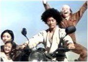 TOKYO ZOMBIE von Sakichi Sato (der Autor von Takashi Miikes farbenfreudigen ICHI THE KILLER) legt nun eine sehr verspielte, sehr japanische Persiflage zu George R. Romeros ehrwürdigem Spätwerk LAND OF THE DEAD vor. Da ihr Land ja alle kennt, kann ich mir einen Abriß der Handlung ja sparen. Wenn aus dem Black Fuji, einem riesigen Müllberg in Tokyo, weiß geschminkte Zombies kriechen und zwei trottelige Jiu-Jitsu Kämpfer den Kampf gegen die Untoten aufnehmen, lacht der Japaner. Um den Spaß noch auf die Spitze zu treiben hat man den beiden kampflustigen Starschauspielern Tadanobu Asano (der Schönling aus Shinya Tsukamoto's Vital und Christopher Doyle's Last Day In The Universe) und Show Aikawa ( aus Miikes ZEBRAMAN) ganz und gar absonderliche Frisuren verpaßt. Asano trägt einen aufgeblasenen Afro, Aikawa hat eine Glatze. Beide sehen absolut bescheuert aus.