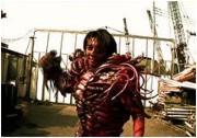 Eigentlich habe ich eine Schlachtplatte erwartet. Mit Blutsoße und Gehacktem im Überfluss sowie einem Gewitter der Bilder, einer Hommage an den Cyberpunkt der späten 80er. Die jedenfalls erwartet man nach der Lektüre so ziemlich jeder Kritik, die bisher über MEATBALL MACHINE veröffentlicht wurde. Und dann kommt mal wieder alles anders, dreht sich ein Film, der zuerst aussieht wie eine Mischung aus Tsukamotos TETSUO und Sogo Ishiis ELECTRIC DRAGON 80.000 V, der scheinbar den blutigen Kampf der Necroborgs (nicht Neoborgs, wie der Klappentexter meint - das wäre in etwa das genaue Gegenteil) in splatternden Bildern beschreibt, in eine vollkommen andere Richtung.