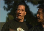 Was für ein Schwachsinn… Nicht dass die Idee einer Persiflage auf Martial Arts-Filmklischees im Speziellen bzw. das Filmbusiness im Allgemeinen grundsätzlich schlecht wäre – keineswegs. So ein Projekt hat Potenzial und könnte, mit einem Gespür für Witz und Liebe zum Detail ausgeführt, zum Totlachen sein. 18 FINGERS OF DEATH verwirklicht dieses Potenzial sogar ansatzweise in Seitenhieben auf bekannte Filme und Schauspieler des Genres, nicht unwitzig ist etwa das Insert "ex-CIA, ex-Navy Seal, ex-mafia, ex-husband, current musician and food expert" für die Seagal-Parodie des Films. Gleichzeitig offenbart sich dabei aber auch jenes Problem, das den Streifen killt: Lew (Hauptdarsteller, Regisseur und Drehbuchautor in Personalunion) begnügt sich nicht mit besagten Seitenhieben, sondern senkt das Niveau durch "lustige Parodienamen" auf unterirdisches Level: Dass aus Jackie Chan plötzlich Jackie Chong und Tae Bo-Erfinder Billy Blanks zu Billy Buff wird mag ja noch gehen, aber Antonio Bandana, Steven Seafood und Chuck Snorris??? Um das witzig zu finden muss man schon ziemlich schmerzfrei sein. Auf dem selben Niveau grundelt der Fäkalhumor in der DESPERADO-mäßig angelegten Szene herum, die in einem Furzkampf (!) endet und allerspätestens wenn jemand mit vollgekackten Unterhosen beworfen wird, sprengt es die Fremdschämskala zwangsläufig.
