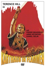 Carmine Gallone realisierte in Gestalt von KARTHAGO IN FLAMMEN einen Historienschinken für den augenscheinlich erheblicher Aufwand betrieben wurde. Doch halt, so ganz korrekt ist das nicht, handelt es sich hierbei doch vielmehr um eine für die Entstehungszeit typische Liebesschnulze im Gewand eines Historienschinkens, dem die Punischen Kriege lediglich als Kulisse für von männlichem Heldenmut ausgelöstes weibliches Geschmachte dienen. Wäre derlei damals nicht gang und gäbe gewesen könnte man fast von Etikettenschwindel sprechen – eine fantastische Überleitung zu Terence Hill, der hier (noch vor seiner Namensanglisierung als Mario Girotti) in der recht kleinen Rolle des Tsour mitspielt. Nichtsdestotrotz wurde der gute Mann in bester MASTERS OF THE UNIVERSE-Pose auf das Cover geklatscht und so der Eindruck erweckt, Hill spiele die Hauptrolle, was dann doch etwas vermessen ist.