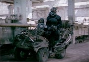 Wie diesen Worten bereits anzumerken ist, mag RECYCLO TRANSFORMERS für die philippinische Filmindustrie ein teurer Spaß sein, an Hollywood erprobten Augen biedert sich der Streifen v.a. durch seine billigen Qualitäten an. Übertriebene Zeitlupen-Shootouts, in denen Hauptdarsteller Ramon 'Bong' Revilla Jr. zum Chow Yun-Fat-Epigonen mutiert, sind da noch ein marginaler Pluspunkt. Wer glaubt, dass auf Film verewigte BMX-Gangs in den letzten zwanzig Jahren unterrepräsentiert waren, wird hier endlich auf seine Kosten kommen. Bis zum großen Roboter-Clash amüsiert Reyes' Film gerade durch seinen selbst gebastelten Look. Grobmüll-Kostüme und -Kulissen lassen die Post-Apokalypse schließlich nicht allzu beängstigend wirken. Noch dazu scheint sich das Drehteam meist auf zwei Locations beschränkt zu haben: Ein altes Rollfeld für Außenaufnahmen. Eine alte Fabrik für Innenaufnahmen. Bombastische Effektorgien auf höchstem Niveau sollte man daher nicht erwarten, gleichen doch die CGI-Hintergründe und recycelten Roboter eher einem Videospiel anno 1999.