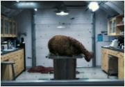 FROZEN ist ungeschnitten (ab 16) in Deutschland zu haben, aber als ernstzunehmende Warnung vor dem Klimawandel wird man ihn nicht in Kopenhagen wiedersehen. Gut, immerhin sagt er ziemlich deutlich, daß uns der Abtauprozess der Polkappen einigen Ärger einhandeln kann. Der verschrobene Forscher Dr. Knipen (verschroben: der mittlerweile völlig jenseitige Val Kilmer) findet nämlich mit ein paar Kollegen in Kanada die enteisten Überreste eines Mammut, in dessen Kadaver leider auch einige überaus bösartige Parasiten den Weg ins Jetzt geschafft haben. Knipen möchte nun, daß seine extrem unsympathische Tochter (extrem unsympathisch: Martha MacIsaac aus SUPERBAD) zu ihm kommt. Plötzlich will er aber doch nicht mehr, daß sie kommt, da ist es aber schon zu spät; am Ende will er dann gar nicht mehr, daß sie weggeht. Das sind rätselhafte Motivationswechsel, wie man sie aus frühen Roger Corman-Filmen kennt, deren Bücher während des 3-Tage-Drehs vor Ort entstanden. Macht aber nix, Töchterchen ist mit ein paar Studenten in Vatis entlegenes Forschungszeltlager gereist, und da die prähistorischen Larven nun als ausgewachsene Ekelkäfer agieren, gibt es auch einen Body Count. In der letzten halben Stunde wird dann nochmal losgeschmaddert, wobei insbesondere das beherzte Abtrennen eines infizierten Arms für leichtes Verziehen der Mundwinkel sorgt.