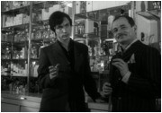 SCHAMLOS ist also vor allen Dingen ein tolles Schund-Vehikel, rasant geschnitten, eminent unterhaltsam und modisch komplett auf der Höhe der Zeit: Wurde GEISSEL DES FLEISCHES noch von wirbelndem Jazz angetrieben, regiert hier der Beat den Lebensrhythmus; jede freie Minute nutzt Saller, um seine blutigen Fressen und knappen Rockschöße mit Performanceclips aus dem nächstbesten Tanzlokal zu garnieren. Die Konsumsatire des Vorgängers ist ebenfalls Schnee von gestern: Im Nachfolger fungieren die glühenden Marquee-Landschaften bloß noch als schmucker Backdrop für nächtliche Autojagden, und dass Annabellas Vater in Südfrüchten macht, ist keine Chiffre für Fernweh, sondern eine praktische Gelegenheit, Marina Paal genüsslich eine Banane deepthroaten zu lassen. Zum Ende hin darf's dann, der avantgardistischen Hipness wegen, auch ein bisschen metareflexiv zugehen, mit Standbildcollagen von albernen Kunst-Happenings, Filmen im Film und einer tödlichen Rückprojektionsfalle, wie man sie sonst nur aus Roadrunner-Cartoons kennt. Fin du cinéma, hätte Godard da sicher drunter geschrieben. Bei Eddy Saller hingegen heißt's überm Abspann: Gimme some more.