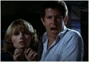 Mit Recht, wie sich nach erneuter Überprüfung herausstellt. Der Film spielt zwar wieder in dem aus den vorigen zwei Teilen bekannten Haus, macht aber keinen auf "wahre Begebenheit", sondern eher einen auf DAS OMEN: Merkwürdige Fratzen auf Fotografien, eigenwillige Fahrstühle und ausgefallene Unfallszenen (letztere erstmals ungeschnitten, aber auch nicht der Rede wert) lassen einen auf ein fieses Kind oder wenigstens böse Hunde oder Raben warten, stattdessen kommt nur wieder der Bienenschwarm unterm Dachboden zum Einsatz. Tony Roberts (ausgerechnet!) und Tess Harper entlarven Scharlatane bei Séancen, stoßen aber beim Amityville-Spuk an ihre Grenzen. Backfisch-Ryan dreht mal kurz am Ouija-Brett, ein Glas rutscht über die Dielen und am Ende kommt sogar noch ein Gummimonster aus der blubbernden Kellerkloake. Mehr läuft nicht. Da hier aber dankenswerterweise die dreidimensionale Fassung vorliegt, sausen die Bienen im Raume herum (das ist echt nicht schlecht geworden), ein Stahlrohr bohrt sich durch die Windschutzscheibe und ein verkohlter Leichnam zittert einem entgegen. Höhepunkt ist ganz klar die bitterböse Entität, die als herzallerliebste Flimmerwolke durch den Hausflur wabert! Der Film bleibt trotzdem wahnsinnig öde und ist ein trauriger Tiefpunkt im Euvre Richard Fleischers, dem Regisseur von SOYLENT GREEN, THE BOSTON STRANGLER und dem Melonen-Bronson MR. MAJESTYK. Und danach kamen von Fleischer nur noch Tiefpunkte; CONAN THE DESTROYER, RED SONJA, au weia.