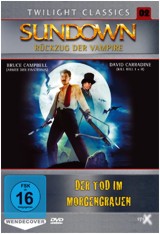 Auch wenn die HBO-Serie TRUE BLOOD zurzeit in aller Munde ist, ist die Idee, dass Vampire eines Tages auf synthetisches Blut umsteigen, und so dem ruchlosen Morden ein Ende setzen können, nicht gerade neu. Von einer ähnlichen Prämisse geht zum Beispiel auch SUNDOWN – RÜCKZUG DER VAMPIRE aus. Ein ziemlich wilder Mix aus Horror, Action, Komödie, Western und ein ganz klein wenig Splatter, der zwar schon ein wenig älter ist, aber nun im Zuge der "Twilight-Reihe" von epiX zum ersten Mal in Deutschland auf DVD erhältlich ist. Anthony Hickox, dessen HELLRAISER III wahrscheinlich sein bekanntester Film ist, führte bei dem 1990 entstandenen Film Regie. Als Zugpferd in SUNDOWN fungieren Bruce Campell, und niemand Geringerer als David Carradine, der im letzten Jahr unter ebenso delikaten wie tragischen Umständen verstarb.