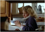 Regisseur Joseph Ruben hält es dankenswerterweise nicht für nötig, das Böse zu erklären. Im ursprünglichen Drehbuch (an dem auch Brian DEATH WISH Garfield beteiligt war) gab es noch Rückblenden, die Jerry Blakes Hintergrund erzählten. Im fertigen Film wird er nur einmal gefragt, ob er eine schlimme Kindheit gehabt habe. Blake antwortet mit starrem Blick: "You could say that." (In der deutschen Fassung sagt er, etwas zu wertend, "Das kann man wohl sagen".) Dieser Hinweis ist völlig ausreichend, THE STEPFATHER entstand lange vor dem heute so inflationären Erklärbär-Kino. All das macht THE STEPFATHER zu einem außerordentlich wirkungsvollen, originellen Thriller, dessen Einfluß nicht zu unterschätzen ist und der mit seinen für Ruben so typischen Herbstfarben in den kanadischen Locations stilvolles Spannungskino bietet. Das Einzige, was dem Film heftig schadet, ist die grausige Musik von Patrick Moraz. Die klingt nämlich wirklich so, wie der Film einst in Deutschland vermarktet wurde (als SPUR IN DEN TOD 2 im Kino versenkt, als KILL DADDY KILL auf Video verramscht): Moraz wütet sich mit fiesen Synthi-Sounds als Westentaschen-Manfredini durch einen nicht vorhanden Billigslasher. Sehr schade.