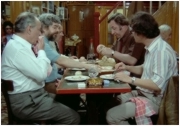 Hätte ein anderer den Plot von DER UHRMACHER VON ST. PAUL auf die Leinwand gebracht, sähe der Film wohl so aus: Ein Vater erfährt, dass sein Sohn einen Mann umgebracht hat. Der Mörder ist wie dereinst sein entfernter Verwandter Pierrot Le Fou mit der Freundin auf der Flucht. Auf Verfolgungsjagden folgt eine dramatische Gerichtsverhandlung, in der Vater und Sohn wieder zueinander finden. Im Kampf gegen den Staat wird die Familie wieder zusammengeschweißt. Das wäre vielleicht ein solider Genrefilm geworden, nicht mehr, nicht weniger, sicher kein Schandfleck in einer Filmografie. Dass DER UHRMACHER VON ST. PAUL nicht nach diesem Schema ablaufen wird, merkt man spätestens nach Ende des Vorspanns. Besagter Uhrmacher Michel (herzzerreißend normal: Philippe Noiret) sitzt da mit seinen Freunden bei Wein und Abendbrot. Diskussionen über die aktuelle Politik werden geführt. Eine lange Sequenz ist das. Es passiert nichts besonderes, nichts, das in einem anderen Film so viel Zeit verdienen würde. Man wähnt sich in einer Dokumentation. So geht es weiter. Am nächsten Morgen macht der Uhrmacher seinen Laden auf. Ein Inspektor taucht auf. Der Sohnemann hat einen Mord begangen, ist auf der Flucht mit seiner Freundin.