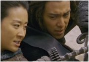 So ist der Film immer dann, wenn gerade keine Akrobatik geboten ist, komplett langweilig. Gottlob ist aber Akrobatik in wohldosierten Mengen geboten. Ein Action-Feuerwerk ist THE TREASURE HUNTER nicht, und kreativ hat sich Choreograf Ching Siu-Tung (HERO, DORORO) auch nicht gerade selbst übertroffen. Aber die Kampfszenen und sonstigen Stunts sind flott und pfiffig und kommen immer rechtzeitig, wenn der Film Gefahr läuft, gar nicht mehr zu interessieren. Die Kamera von Xiao-Ding Zhao (HOUSE OF FLYING DAGGERS) holt aus den wüsten Schauplätzen ein befriedigendes Mindestmaß an Atmosphäre heraus. Auch da wäre sicherlich mehr drin gewesen, aber ansehnlich ist seine Arbeit allemal. Genauso sind die Spezialeffekt zeitgemäßer Standard, weder weniger noch mehr. Möglicherweise hat das Pantoffelkino ihnen gegenüber mehr Gnade als der Imax-Zirkus.