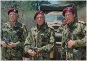 Zur allgemeinen Überraschung legten Dietrich und Margheriti mit DER COMMANDO noch einen nach, der 1988 allerdings als reichlich später Nachklapp absoff. Die deutsche Synchro-Elite darf sich hier mal so richtig nach vorne spielen: Manne Lehmann teilt sich mit Lewis Collins die erste Geige, neben den Rückkehrern Frank Glaubrecht und Thomas Danneberg ist dieses Mal auch Christian "De Niro" Brückner dabei - und das Drehbuch stammt von Arne "Tom Hanks" Elsholtz! John Steiner, jetzt noch ausgemergelter, absolviert seine Rolle im Orginal mit gruseligem französischen Akzent, worauf man in der deutschen Fassung gottlob verzichtete. Abseits der Action ziehen immerhin Lee Van Cleef und Donald "Caro Donaldo" Pleasence die Fäden. Und statt Rebellen geht es dieses Mal wieder um eine Söldnertruppe im Goldenen Dreieck, mit Collins als Anführer und Lehmann als eingeschleustem Agenten Wild Bill Hickok (ja wirklich), der dem Falschspieler Pleasence das Handwerk legen soll. Dass Dietrich dieses Mal ganz offensichtlich weniger Geld locker machte, hat einen Vorteil: Der Eloy-Score aus GEHEIMCODE wird recyclet. Ansonsten nur Nachteile: Auch einige Explosionen kommen aus GEHEIMCODE, sämtliche Hubschrauberaufnahmen rekrutieren sich aus schlecht kaschiertem Stock Footage, und generell bietet der COMMANDER einfach viel zu wenig Action - und die, die es gibt, ist irre zahm (im deutschen Kino lief das Ganze sogar noch ab 12). Margheritis Film fehlt auch die gewohnte Breitwand, irgendwie sieht das alles nach Fernsehen aus. Ein hübscher Epilog in Neapel versöhnt da ein wenig.