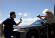 Louisiana, heiß, verschwitzt, grüne Sümpfe, leere Freeways. Die perfekte Kulisse. So ein Reisser will schnörkellos und straight inszeniert sein, und zu Anfang stimmen die hektischen Spielereien von Regisseur Antonio Negret noch etwas mißtrauisch. Das Gehampel ist überflüssig, die auffälligen visuellen Anstrengungen auch - man kann schon eine Kamera an der Autotür befestigen, mach ich auch gern; aber man sollte sie dann innen anbringen, wo es auch etwas zu sehen gibt, und nicht außen, da ist nämlich nichts los. Zum Glück verabschiedet sich Negret bald von all dem überflüssigen Ballast und bringt TRANSIT voll auf Spur. Die Action bei einer solch fiebrigen Hatz muß sitzen, und Negret pitcht seinen Car Chase-Beat bis zum Siedepunkt, bis er ihn wie ein guter DJ in der Bassdröhnung entlädt und James Frain nur noch ein kurzes "Oh, fuck" entweicht, bevor er sein Auto zum fliegenden Feuerball crasht. Wow.
