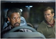 Zum anderen gibt sich SAFE HOUSE, zumindest in den Grenzen des Genres, als veritabler Schauspielerfilm: In Nebenrollen dürfen die altgedienten Charakterfressen Brendan Gleeson, Sam Shepard, Robert Patrick und Ruben Blades dem Affen Zucker geben und einer bösartig verschleuderten Vera Farmiga auf die Pumps treten. Ganz vorne steht natürlich das Duo Ryan Reynolds/Denzel Washington, sicherlich kein Power-Mambo wie einst Ethan Hawke und Denzel in TRAINING DAY, aber dennoch eine ausgesprochen kesse Sohle auf heissem Parkett. Reynolds kann hier nach seinen zweifelhaften Auftritten als Grüne Laterne und in RomCom-Unsinn mit Sandra Bullock wieder ein paar Punkte gut machen, und Washington kommandiert schon beim ersten Auftritt mit seiner unerhörten, fast schon obszönen Konzentration das Geschehen. Der nach wie vor ausgesprochen attraktive Könner gibt mühelos den Ton an und skizziert Frost als Superprofi zwischen Eitelkeit und Verbitterung. Schade nur, daß Denzel in einigen Szenen doch wieder den manipulativen Quatschkopp geben muß, den er einst in TRAINING DAY so überzeugend entwickelte und nun schon allzu oft wiederholt hat.