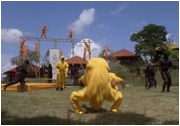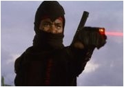 So steht er denn am Anfang von AMERICAN FIGHTER als Soldat Joe Armstrong in Army-Klamotten rum und lässt sich von den anderen uniformierten Affen partout nicht provozieren; das konsequente Geschweige und Gegucke kommt allerdings reichlich psycho rüber. Gut, daß gleich was passiert - Armstrongs Militärkonvoi wird überfallen und die Tochter des Generals (die süße Judie Aronson, die sich beim Dreh von FREITAG DER 13. - DAS LETZTE KAPITEL eine Lungenentzündung holte) drangsaliert. Das kann Armstrong/Dudikoff nicht dulden! Seelenruhig beobachten die bösen Jungs, immerhin mit Maschinengewehren bewaffnet, wie der schweigsame Fighter ihnen auf die Glocke haut; jeder wartet brav, bis er an der Reihe ist. Plötzlich springen schwarze Ninjas wie die wilde Wutz aus dem Gebüsch und hauen mit! Armstrong und die schöne Tochter können im Getümmel entkommen, doch die Gerettete mokiert sich vor allem darüber, daß ihr die Schuhe verlustig gehen und Armstrong ihren Rock zerreißt. Wenige Filmminuten später allerdings, nanu, verzehrt sie sich schon vor Sehnsucht nach dem edlen Ritter und möchte ihn auch alsbald ins Bett ziehen!