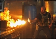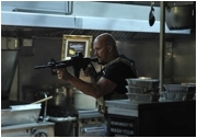 Sehr schade, denn die Grundidee aus dem fruchtbaren Feld zwischen ASSAULT ON PRECINCT 13 und STIRB LANGSAM geht in Ordnung, genau wie die Darsteller - Michael Paré gibt einen ziemlich saftigen Gegner ab - und so mancher Dialog, insbesondere zwischen Austin und O'Brien (Steinbirne muß sich von ihr sogar zünftig die Fresse polieren lassen). Seagal lässt sich wie immer sofort von einem Double vertreten, sobald er der Kamera den Rücken zudreht, und zeigt sich in Sachen Klamotte gewohnt beratungsresistent. Für den Kampfeinsatz dreht er das Basecap auf der dicken Rübe nach hinten und setzt die getönte Brille auf, dazu gibt es eine häßliche Granatenweste, die geradezu grotesk aufträgt, fertig ist die Kampftonne. In Kampfszenen vermittelt er trotzdem das Gefühl, eine unbesiegbare Dampframme zu sein, und das macht irgendwie immer noch Spaß.