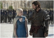 Und auch in emotional weniger aufgewühlten Momenten entfaltet das gut gesprochene Wort seine Macht: Stannis Baratheon (etwas blass: Stephen Dillane), potentieller Thronanwärter, der mit seinem Anliegen bei den überheblichen Bürokraten der Iron Bank übel abperlt, bekommt Unterstützung durch eine Ansprache seiner sonst eher wortkargen rechten Hand Davos Seaworth (schön changierend zwischen leicht verlegen und diskret souverän: Liam Cunningham), dessen kraftvollen Worte schlussendlich überzeugen. Ein sehr schönes Detail im GAME OF THRONES-Universum, dass Macht und Einflussnahme auch mit der Überzeugungskraft des Wortes funktioniert.