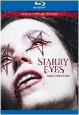 Bei einem Film wie STARRY EYES wird einem mal wieder deutlich vor Augen geführt, was im Horrorfilm der letzten 20 Jahren so oft und noch viel öfter falsch läuft. Sicher, auch hier gewinnt die Story nicht gerade den goldenen Schreibpokal, die Erkenntnis, dass Hollywood Böses will und Ruhm einen schwer verändert, ist das Äquivalent zu "der Himmel ist blau, das Gras grün" und ein Retro-Oldschool-"Ach, damals..."-Flair ist sowieso en vogue. Die zutiefst emotionale, menschliche Komponente hebt STARRY EYES aber von der Konkurrenz ab. Die beiden Regisseure Kevin Kolsch und Dennis Widmyer begehen in ihrem fein austarierten Quasi-Debüt (der erste Film, der in einem größeren Rahmen ausgewertet wird) nicht den Fehler, sofort in die Vollen zu gehen und so das meiste Pulver frühzeitig zu verschießen, man nimmt sich klugerweise erstmal ausreichend Zeit um den Hauptcharakter sowie das Umfeld vorzustellen, sich regelrecht einzufühlen. Hilfreich ist dabei, dass Sarah von der jungen Newcomerin Alexandra Essoe gespielt wird, die hier (von Indie-Kurzfilmen einmal abgesehen) in ihrer ersten Hauptrolle in einem Spielfilm zu sehen ist und sich dafür mit einer ungeheuer intensiven Vorstellung bedankt, die den Verdacht aufkommen lässt, dass ihr die dargestellte Figur nicht allzu fremd ist: Das nervöse, unsichere Auftreten bei Castings, das autoaggressive Verhalten, wenn's wieder nicht geklappt hat, dieses Klammern an jeden Strohhalm, diese überschwängliche Freude bei positiven Nachrichten, Essoe macht ihre Figur jederzeit spürbar, man leidet mit, freut sich mit und ist umso entsetzter, wenn dann das Grauen hereinbricht. Aber auch was das Umfeld angeht besticht STARRY EYES durch eine für einen Horrorfilm relativ feinsinnige Figurenzeichnung: Der Chef von Sarahs fragwürdiger Arbeitsstelle entpuppt sich als überraschend sympathisch und verständnisvoll und ihr Freundeskreis, eine Gruppe von Abhängern und Indie-"Künstlern", also eigentlich prädestiniert für "liebenswert", als egoistisch, antriebs- und teilnahmslos - es ist also nicht nur Hollywood böse, auch wenn Louis Dezseran sich mit seiner Rolle als schmierig-sinistrer "The Producer" als nächster Dauerfinsterling doppelt und dreifach empfiehlt.
