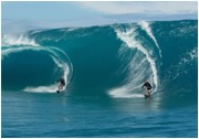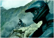 So weit, so bekloppt. Aber der neue POINT BREAK (der Filmtitel muß, da es ja nun nicht mehr ums Surfen und den Wellenbruch geht, mittig umständlich im Dialog erklärt werden) tut im Gegensatz zu Bigelows Äktschnschnulze gar nicht erst so, als müsse hier mehr verhandelt werden als totaler Quatsch. Schon vorm Vorspann direkt rein in die Sause, Johnny Utah ist nämlich selber totaler Extremsportjunkie und fegt mit seinem Crossbike über die Sandhügel seiner Heimat. Hammer! Regisseur Core steht, das ist ja auch seine eigentliche Berufung, selbst hinter der Kamera und besorgts einem so richtig. Motto ist: Bang for your buck. Ständig wird irgendwo runtergesprungen und geklettert und geflogen, rund um die Welt, Schweiz Frankreich Indien Venezuela und so weiter. Klotzen, nicht kleckern. Die Surfsequenz bei Biaritz (gedreht in Tahiti) kommt mit ganz dicker Hose daher, da staunt sogar Laird Hamilton, der auf dem Jetski an den Megabrechern vorbeidüst.