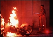 Licht und Schatten, schummrige Gassen und explodierende Motorräder, dazu die flirrende Energie einer Stadt, die scheinbar nie zur Ruhe kommt. STRASSEN IN FLAMMEN ist wie fast alle Filme von Hill ebenfalls mit der urbanen und sozialen Architektur ihres Settings verwoben. Die Großstadt als gefährlicher, aber auch sehnsuchtsvoller Ort, in dem alles möglich scheint. Hill inszeniert diesen Ort als wundersame, eigene Welt, die für ihre Bewohner gleich mehrere Versprechen impliziert. Rausch und Liebe, ein alles aufsaugender Eskapismus, den der Regisseur in eine rasante Dramaturgie verpackt, die kaum Zeit zum Luftholen lässt.