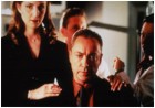 Den Anfang macht Udos flottes Showreel, das ihn ausschließlich in seinen internationalen Erfolgen der letzten 15 Jahre zeigt, auf Musik geschnitten und durchaus wirkungsvoll; BREAKING THE WAVES, BLADE, MY OWN PRIVATE IDAHO und so weiter. Danach ein echtes Kleinod: Kiers Kurzfilm LAST TRIP TO HARRISBURG , in dem er als Mann und als Frau die Lippen bewegt zu von Fassbinder verlesenen Bibelzitaten. Ein alter Mann bringt ein Lamm um. Schräg ist gar kein Ausdruck. Musik übrigens von Helmut Zerlett. Weiter geht es mit einem eigens angefertigten Zusammenschnitt zum Thema "Udo Kier - The Villain is the Hero". Mal abgesehen davon, daß man an der Akademie der Künste leider ganz erhebliche Probleme damit zu haben scheint, einen Beamer korrekt einzustellen, ist diese Filmcollage aufs Peinlichste mißlungen. Zunächst einmal sind alle Clips in deutsch synchronisierter Form zu sehen, so daß man den notorischen Synchronmuffel Kier nicht ein einziges Mal zu hören bekommt, sondern mit ständig wechselnden Sprechern sehr wechselhafter Qualität zu kämpfen hat. Keine elegante Lösung für die Ehrung eines Schauspielers, der schließlich auch mit seiner Stimme arbeitet. Die Auswahl der teils viel zu langen Ausschnitte sagt auch nicht das Geringste über den Mimen aus. Neben unfaßbarem Müll mit Namen wie DOOMSDAYER und MEGGIDO: THE OMEGA CODE II stehen das Blutgekotze aus BLOOD FOR DRACULA und das Ausgepeitsche aus INSEL DER BLUTIGEN PLANTAGE sinnfrei herum und lösen zu Recht Unmut beim Publikum aus. Wie die Macher drauf kommen, Udos Talent fürs Dämonische manifestiere sich im Schlangengeschlitze von END OF DAYS, ist mir ebenso rätselhaft wie die Tatsache, daß in einigen Ausschnitten ganz andere Schauspieler dominieren als der Jubilar (Stephen Dorff in BLADE, Pinocchio in PINOCCHIO). Eine mehr als unglückliche Auswahl, dargeboten in ebenso unglücklicher Form. Ein Jammer.